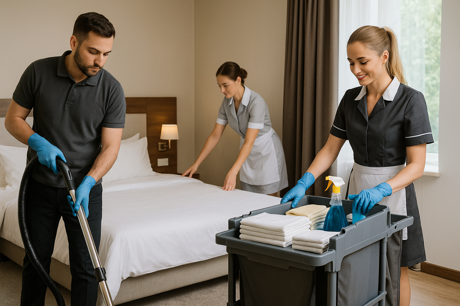 Nettoyage hôtelier – Services professionnels Notre entreprise est spécialisée dans le nettoyage pour les établissements hôteliers. Nous mettons à votre disposition :